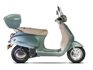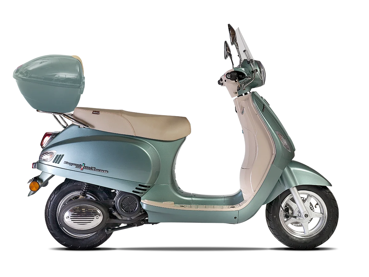 La Corven Expert 150 Milano es un scooter urbano “vintage” de 150 cm³ con motor monocilíndrico 4 tiempos refrigerado por aire, transmisión automática por variador (VAV), freno delantero a disco y trasero a tambor.