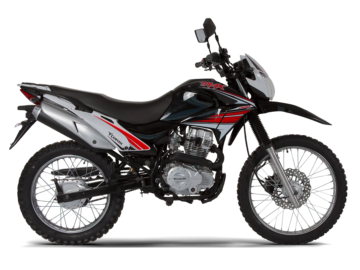 La Corven Triax 200 R3 es una on/off de 200 cc con motor monocilíndrico 4 tiempos OHV refrigerado por aire, caja de 5 velocidades, freno delantero a disco y trasero a tambor, tanque de 12,5 litros.